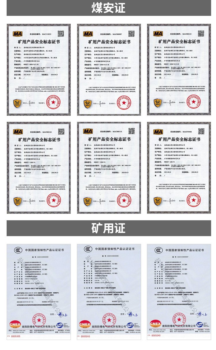 KBSGZY-1000/6 礦用隔爆型移動變電站 干式變壓器 煤安證齊全
